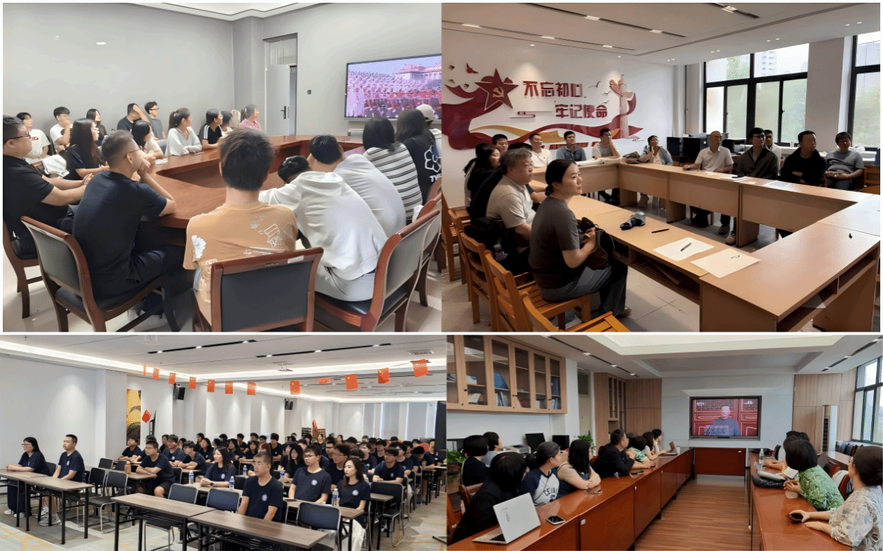 9月3日上午9时,纪念中国人民抗日战争暨世界反法西斯战争胜利80周年大会在北京天安门广场隆重举行。Ray竞技官网党委精心组织学院师生以党支部为单位,分别在教学大楼806教室、学府城3-201会议室及武汉认识实习住所会议室等多地,集中收看大会实况转播。学院党委委员、领导班子成员与230余名师生共同参与了此次观看活动。