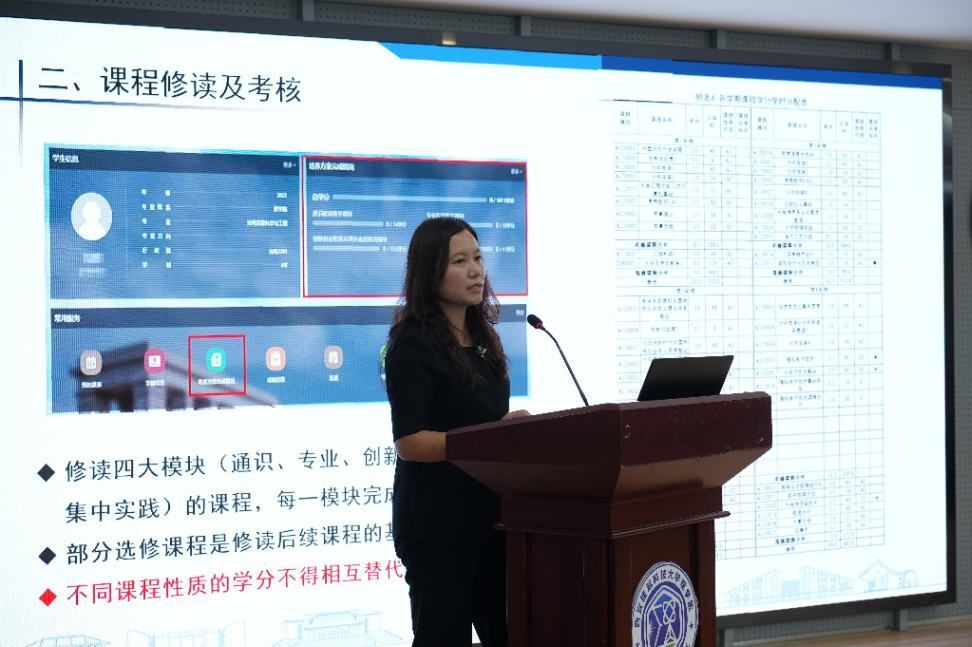 副院长宫春梅向家长们详细介绍了学校的学生学籍管理和人才培养的相关制度,希望家长鼓励学生认真学习,积极参加学院“本硕一体化”贯通培养,把握机会为未来赋能。