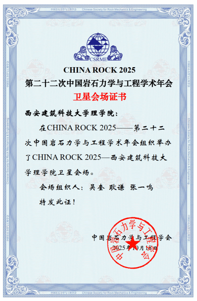 此次卫星会场活动是我们学风建设的重要实践,不仅拓宽了学生的学术视野,更通过近距离接触科研前沿激发了学生的创新热情与探索动力。未来,我们将持续搭建各类学术交流平台,为培养高素质科研人才、营造优良学术氛围奠定坚实基础。中国岩石力学与工程学会对我们在本次学术年会中组织卫星会场的工作给予了高度认可,并对我们为推动领域学术交流所做的贡献表示感谢。