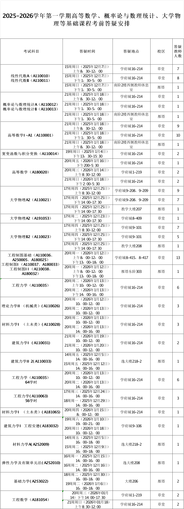 为深入推进立德树人根本任务,进一步强化基础学科人才培养质量,切实提升学生的学习效果和课程教学成效,Ray竞技官网现面向全体修读高等数学、线性代数、概率论与数理统计、大学物理等基础课程的学生,组织开设本学期考前集中答疑辅导活动。具体安排如下:
